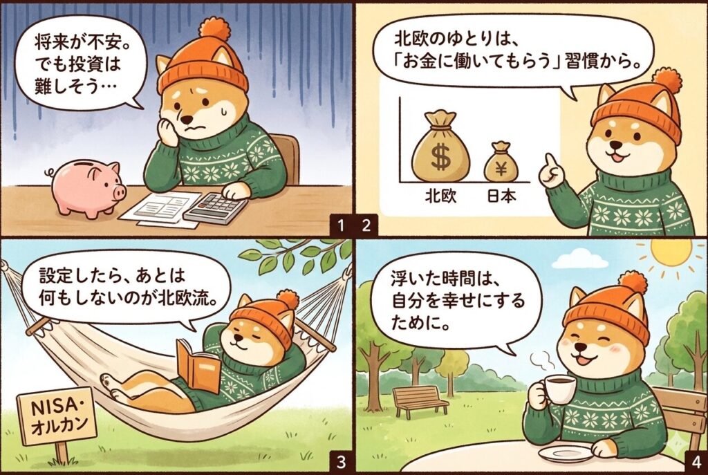 世界幸福度ランキング上位の北欧諸国では、多くの人々が当たり前のように投資を行い、豊かな資産を築いています。その秘訣は、「資産の成長をプロと時間に任せ、自分は今この瞬間を楽しむ」という合理的な考え方にあります。